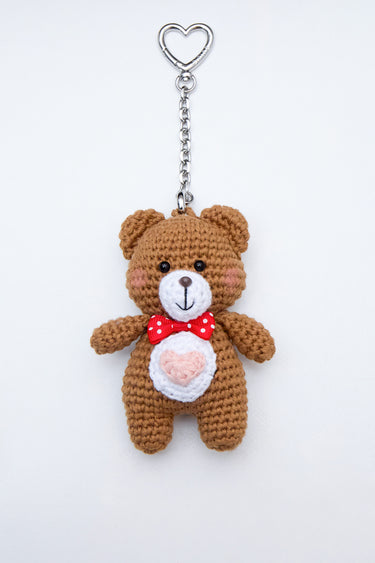 Meet Blushie—your new everyday sweetheart. Hand-crocheted with care and finished with a cherry red bow and blush heart detail, she’s full of soft charm. As part of our Guizio Sweeties collection, this teddy bear keychain was made to hang close—on your keys, bag, or belt loop—for a touch of romance wherever you go.