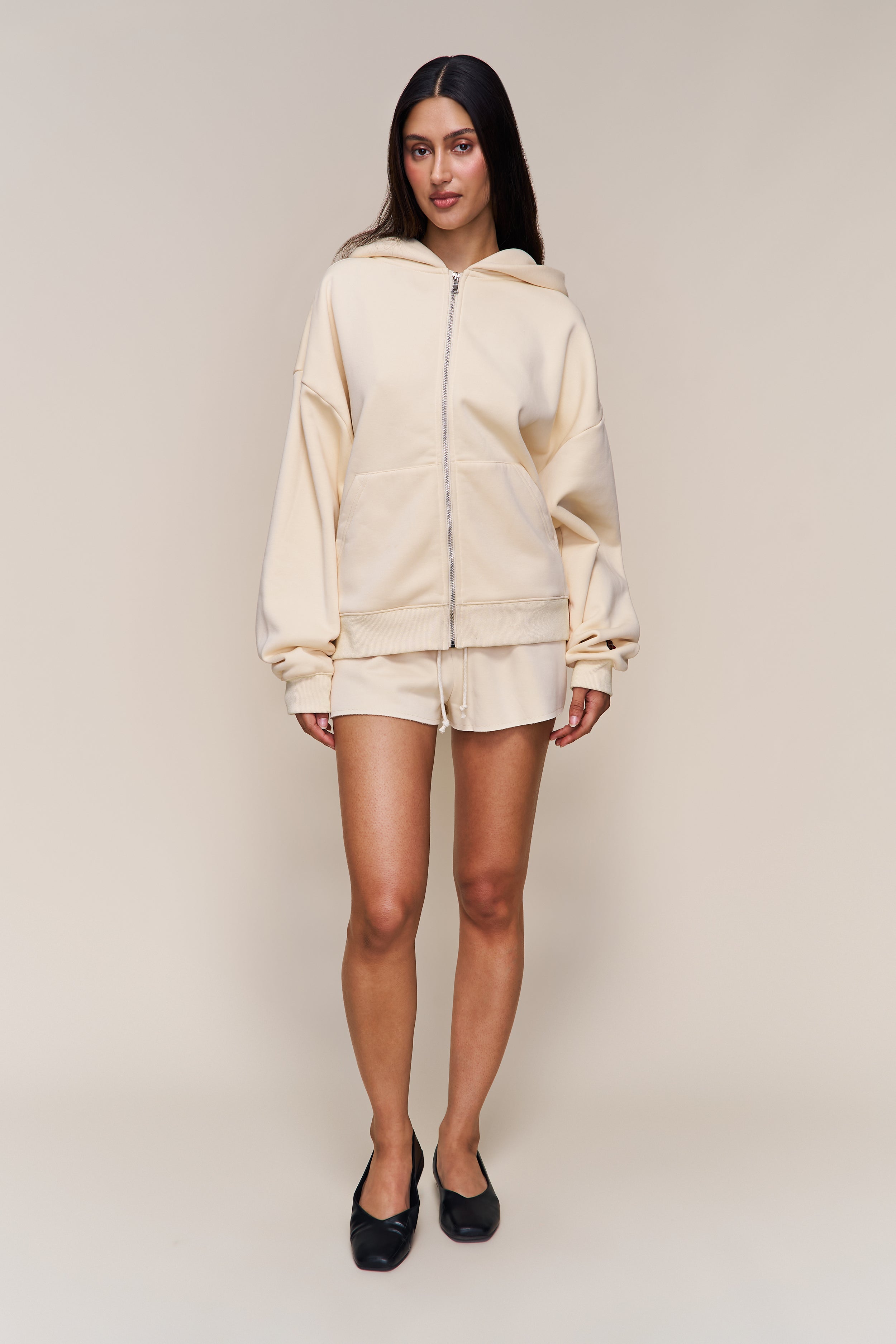 - These ultra-soft fleece shorts are crafted for comfort with a relaxed fit, adjustable drawstring waist, and raw-edge detail for an undone finish. Perfectly lived-in and effortlessly cool