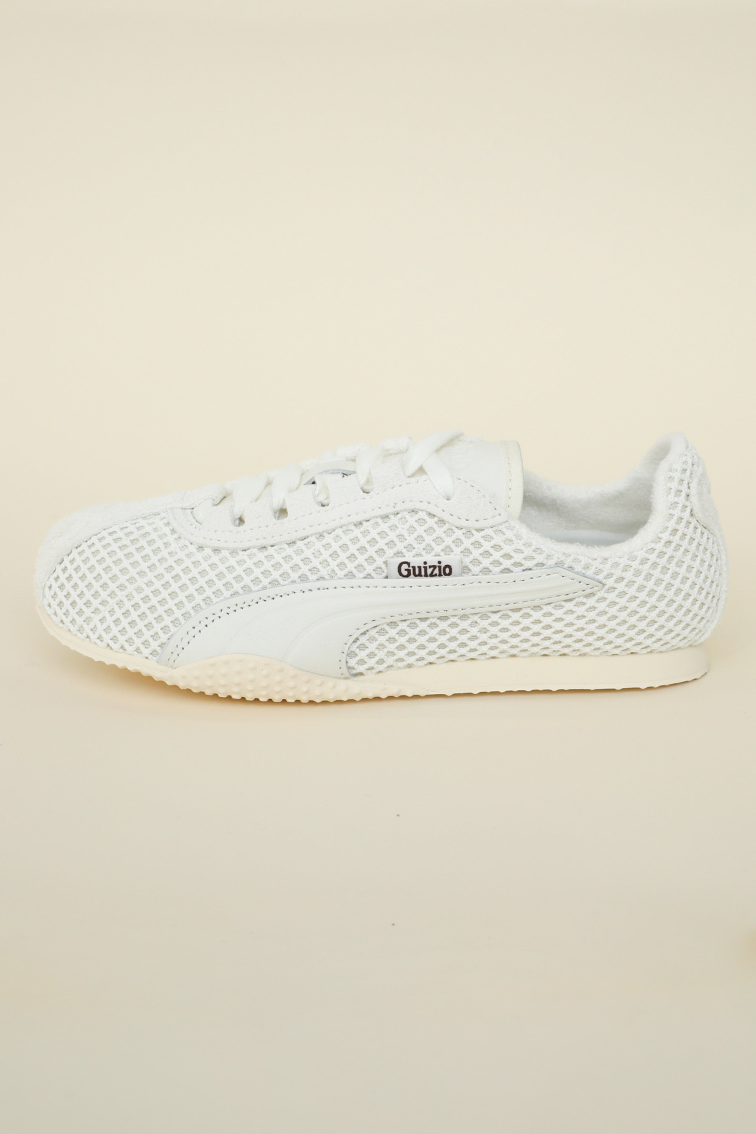 - The iconic H-Street makes its return in the PUMA x GUIZIO collab, reimagined with a fresh, modern edge. A nod to the early 2000s era where track and field collided with street culture, this archival runner features a lightweight mesh upper, low-profile silhouette, and all the heritage details that made it a classic. Designed with a regular fit and rounded toe for everyday wear, it’s finished with a lace-up closure, moulded footbed, and flat heel for a sleek, streamlined feel. Tonal co-branding and mesh paneling give it the perfect sport-meets-street finish.